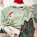 Believe in the magic of Christmas with this cozy “Believe” sweatshirt! The soft script lettering is designed in a fluffy chenille-style texture, topped with a festive red Santa hat for the perfect holiday touch. Playful yet meaningful, this sweatshirt is ideal for celebrating the season whether you’re decorating the tree, attending a Christmas party, or sipping cocoa by the fire. A timeless holiday piece that spreads cheer and keeps the magic alive all season long.