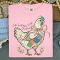 Sweet, soft, and full of farmhouse charm. This patchwork-style chicken graphic paired with a dainty bow and gentle florals brings cozy country vibes with a playful twist. A feel-good design made for anyone who knows life is simply better with chickens.