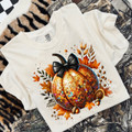When fall meets the dance floor, you get this glam pumpkin moment. This disco ball-inspired pumpkin sparkles with warm autumn hues and is topped off with a chic black bow for that perfect boutique flair. Surrounded by golden leaves, acorns, and moody foliage, this design brings the cozy vibes and the sparkle. Whether you're sipping cider or heading to a fall fest, this one's a showstopper.