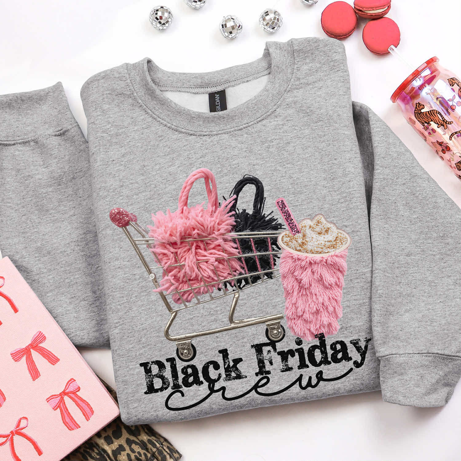 Calling all deal hunters — this Black Friday Crew design is made for those who thrive on early morning coffee runs, overflowing carts, and unbeatable sales. Featuring a trendy shopping cart filled with pink and black bags and a cozy drink, this design perfectly captures the excitement (and caffeine-fueled chaos) of the biggest shopping day of the year. It’s a must-have for matching with your shopping besties and showing up in true boutique style.
