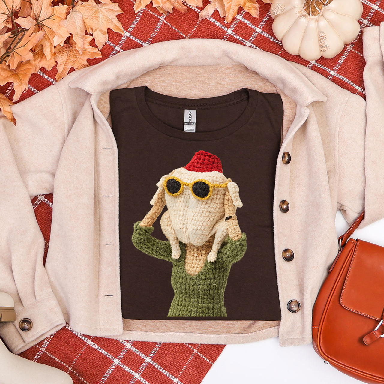 Bring a little humor to the holidays with this hilarious Turkey with Sunglasses Tee. Featuring a faux-knit style turkey wearing a festive hat and cool shades, this design perfectly blends cozy vibes with classic pop-culture humor. It’s the ideal pick for Thanksgiving gatherings, Friendsgiving parties, or any fall day that could use a laugh. The textured, yarn-inspired look adds a handmade touch that feels nostalgic and fun—because nothing says holiday spirit like a turkey in sunglasses!