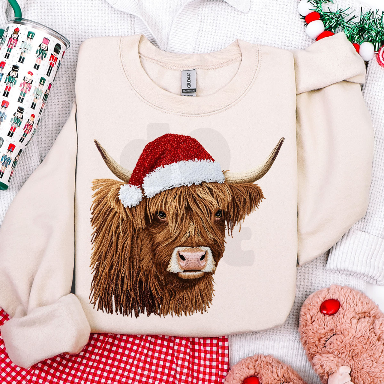 Bring a little farmhouse flair to the holidays with this Highland Cow Santa Hat sweatshirt. Featuring a fluffy, textured highland cow decked out in a red Santa hat, this design perfectly blends rustic charm with Christmas cheer. The faux-fur style detailing gives it a cozy, handcrafted feel — making it the perfect choice for tree trimming, cocoa sipping, or gifting to your favorite country Christmas lover. It’s festive, fun, and full of down-home holiday spirit.
