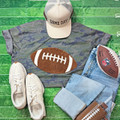 Game day ready and full of spirit—this fluffy football design is the perfect piece for cheering under the Friday night lights or watching Sunday kickoffs. The textured patch adds a fun, sporty twist while keeping the look boutique and trendy. Whether you’re tailgating, supporting your favorite team, or building a game day collection, this tee brings all the cozy vibes and football energy you need. A must-have for sports fans who love style as much as the game.