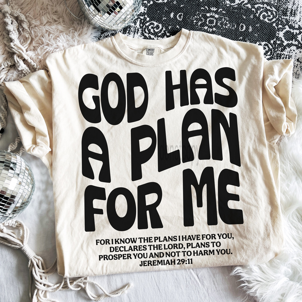 This faith-centered design delivers a powerful message of encouragement with the bold statement “God Has a Plan for Me.” The oversized lettering fills the design with confidence and clarity, making the message impossible to miss. Each letter is styled in thick, rounded typography that gives the graphic a strong yet approachable look, creating a modern statement piece rooted in faith.