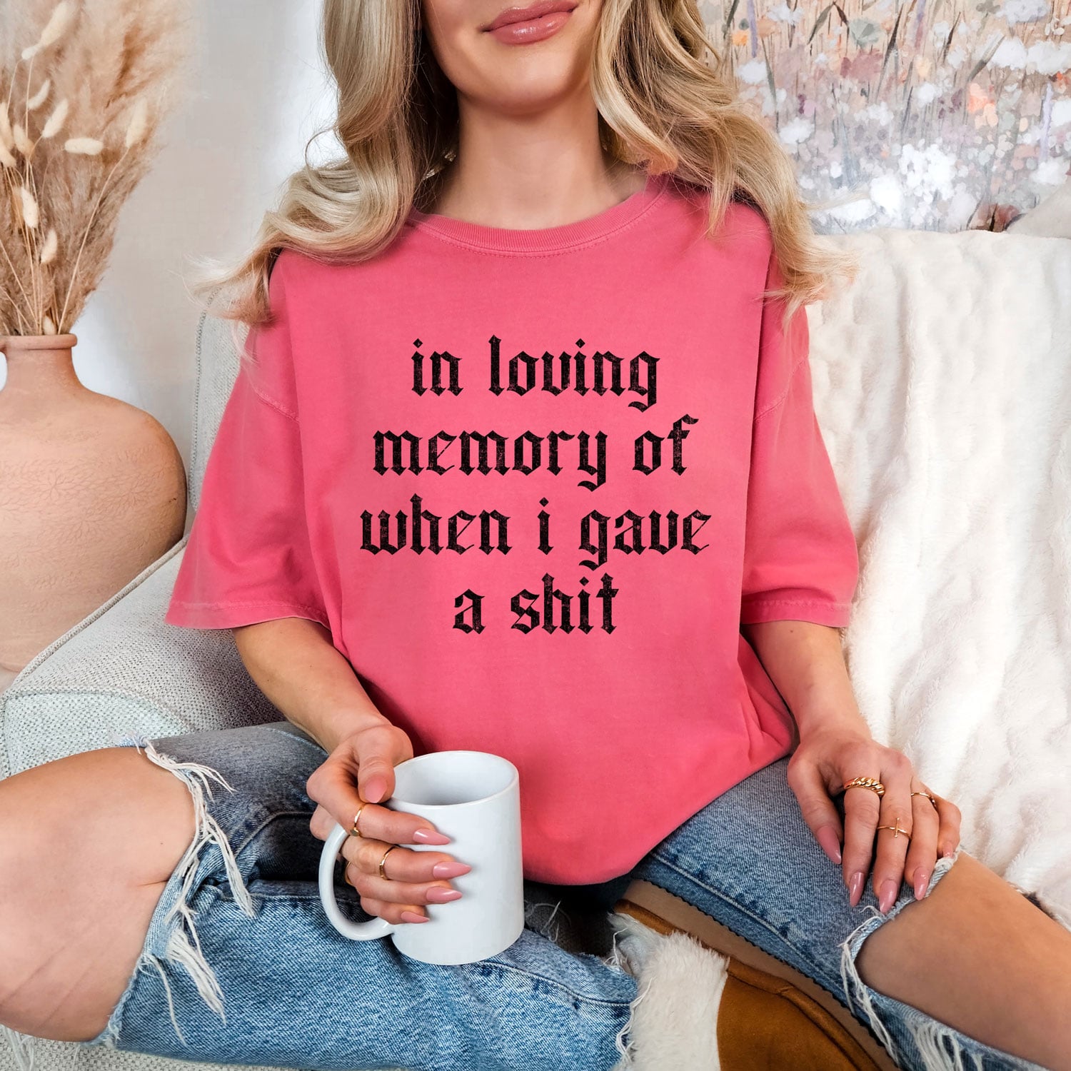 It’s the perfect mix of sarcasm and confidence—simple, striking, and made for anyone who’s fully embracing their unbothered era with a little humor.