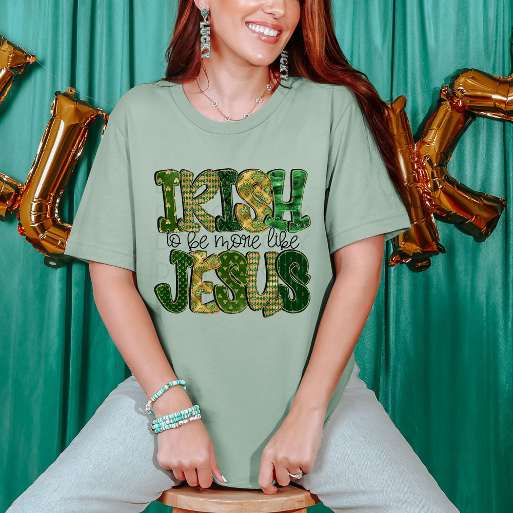 This playful faith-forward design blends humor and heart with a St. Patrick’s Day twist. Featuring bold, textured lettering in layered green tones, the phrase adds a lighthearted nod to Irish spirit while keeping the message rooted in faith. The mix of patterns and vintage-inspired styling gives it depth and visual interest, making it feel fun, meaningful, and easy to wear well beyond the holiday.
