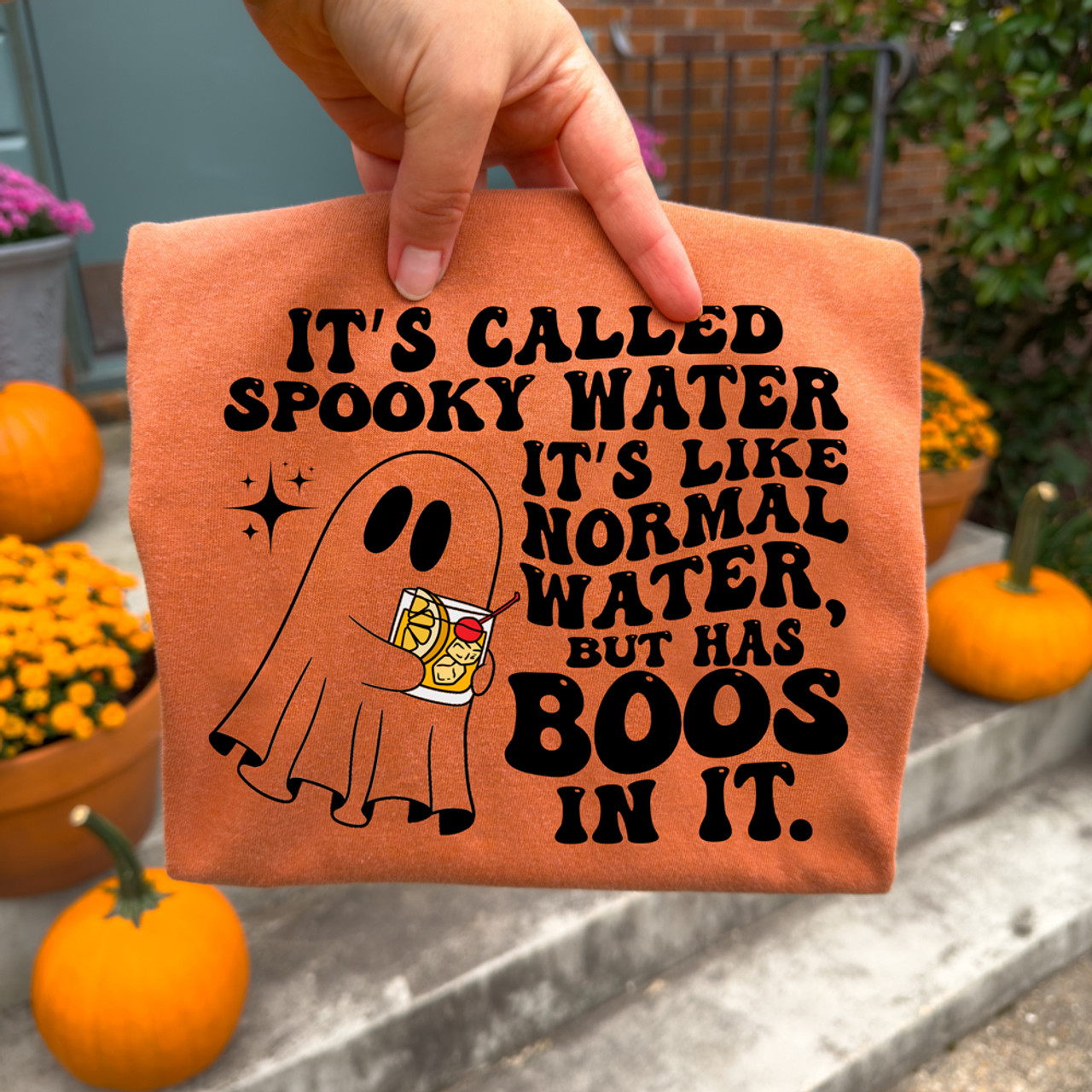 Add some humor to your spooky season lineup with this playful “Spooky Water” tee. Featuring a retro-styled ghost sipping a drink with the hilarious phrase, “It’s called spooky water, it’s like normal water, but has boos in it”, this design is the perfect mix of cute and cheeky. Ideal for Halloween parties, pumpkin patch outings, or just sipping your own “boos,” this tee brings a lighthearted twist to fall fashion.