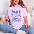 This design carries a soft, heartfelt message wrapped in a feminine, boutique-style aesthetic. “Jesus made her a Mama” is written in a mix of flowing script and bold lettering, creating a beautiful contrast that feels both meaningful and eye-catching. The phrase is layered over delicate vertical stripes in soft pink tones, giving it a gentle, classic backdrop that enhances the overall warmth of the message. Small bow accents and subtle sparkle details add a sweet, thoughtful touch, bringing in just the right amount of charm without taking away from the sentiment. The additional line, “and she wouldn’t have it any other way,” completes the design with a quiet confidence and deep sense of gratitude, making it feel personal and full of love. The soft color palette and graceful layout give this design a peaceful, comforting presence that resonates with faith, motherhood, and everyday joy.