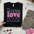 Bold, playful, and made to stand out, this Love Love design features soft pink textured lettering layered over a sleek black base. The contrast is eye-catching while the cozy raised finish adds just the right amount of dimension. Finished with a sweet “all day, every day” detail, it’s an effortless statement piece that works well beyond Valentine’s Day.