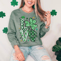 This bold LOVE-inspired graphic blends playful St. Patrick’s Day charm with eye-catching textures and patterns. Each letter features a unique mix of clovers, leopard accents, and festive details, creating a fun, layered look that feels cheerful, trendy, and full of lucky energy.