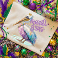 Playful, festive, and full of Mardi Gras charm. This design features a hand-painted style pelican dressed for celebration, complete with jewel tones, beads, and a tiny crown that gives it that extra touch of personality. The soft watercolor look paired with bold purple lettering keeps it whimsical while still feeling elevated and boutique-ready.