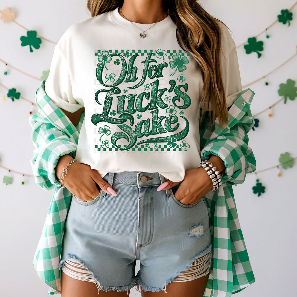 This playful design features bold, vintage-inspired lettering layered over a subtle checkered backdrop, surrounded by scattered shamrocks for a fun and slightly sassy lucky vibe. The mix of textured greens and flowing script gives it a worn-in, festive feel that’s eye-catching without being loud. It’s the perfect balance of humor, charm, and laid-back St. Patrick’s Day energy.