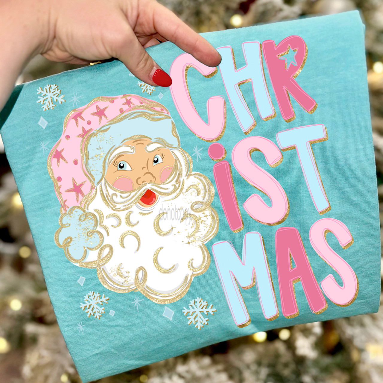 Celebrate the season in color with this Preppy Santa Christmas design! Featuring a cheerful Santa in pastel pink and aqua tones with playful faux gold accents, this design brings a modern twist to classic Christmas style. The bold block lettering and whimsical snowflakes make it pop with personality—perfect for anyone who loves a bright, boutique-inspired holiday look. Fun, festive, and full of charm, it’s sure to bring smiles all season long.