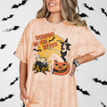 Step into spooky season with a retro-inspired twist. This “Season of the Witch” design features a pin-up style witch perched on a jack-o’-lantern under a glowing moon, complete with bats and a bubbling cauldron. The vintage vibes and playful artwork make it a statement piece for Halloween lovers who live for all things witchy and fun. Perfect for adding a little magic to your fall wardrobe.