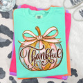 Add a little sparkle to your gratitude this season with our Thankful Pumpkin tee—a playful twist on classic fall vibes! This colorful design features a pastel pumpkin dressed in soft pinks, golden glitter tones, and cool turquoise, all tied up with a shimmery bow and finished with an elegant “Thankful” script. It’s the perfect pop of color for pumpkin patches, Thanksgiving gatherings, or boutique fall displays. Eye-catching and cozy with just the right amount of sass.