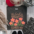Bright, uplifting, and rooted in truth, this “The Lord Is Greater Than the Giants You Face” design pairs a powerful faith-filled message with cheerful blooms. The bold coral and pink flowers stand tall as a vibrant reminder that no obstacle is bigger than God’s strength. Encouraging and stylish, this graphic is perfect for carrying scripture-inspired confidence into your everyday.
