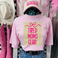 This design keeps things fun, relatable, and a little bit bold with its playful “Tired Moms Club” message. The bright pink lettering pops against the soft striped background, while the bow detail at the top adds a cute, feminine touch. It’s the perfect mix of humor and style—easy to wear, eye-catching, and made for those everyday mom moments we all understand.